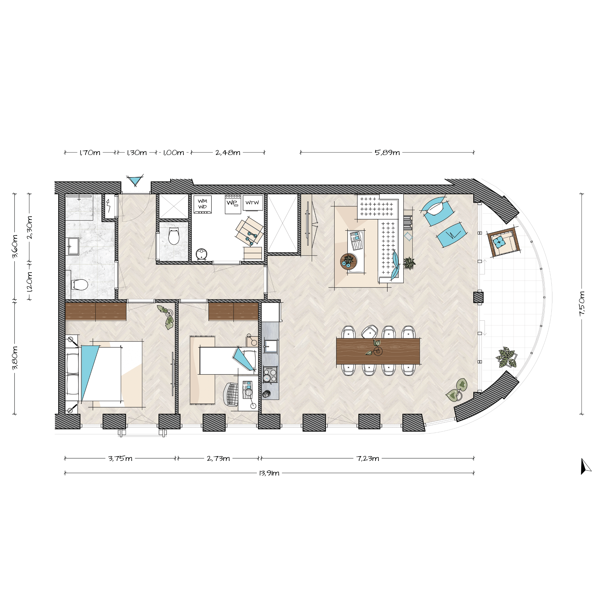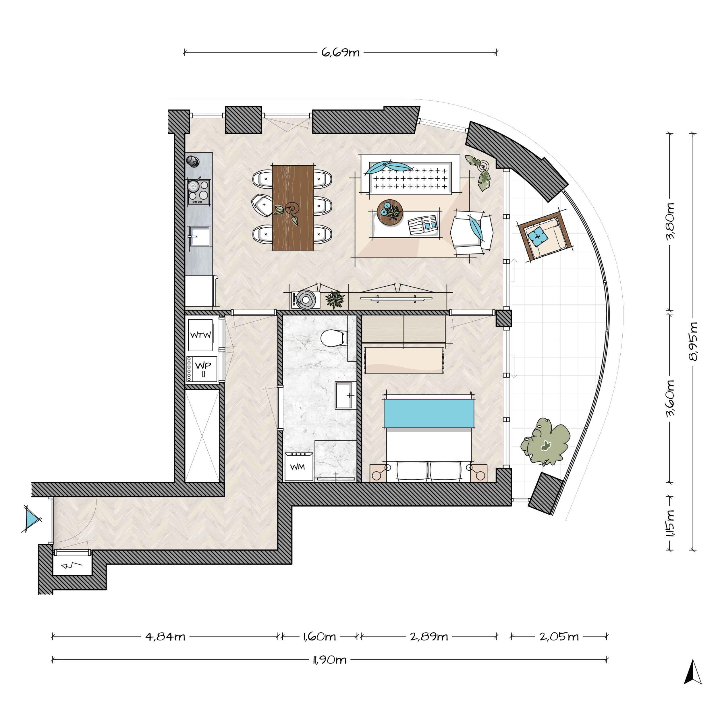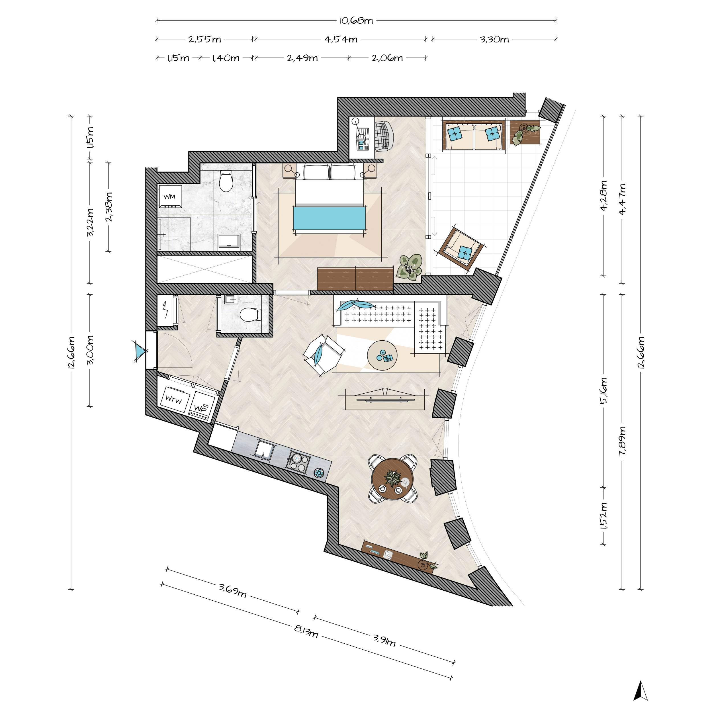 Je vindt hier appartementen die slim zijn ingedeeld, met veel licht en uitzicht. Er zijn compacte types, comfortabele middenklasse types en ruimere appartementen voor wie meer ruimte wil.